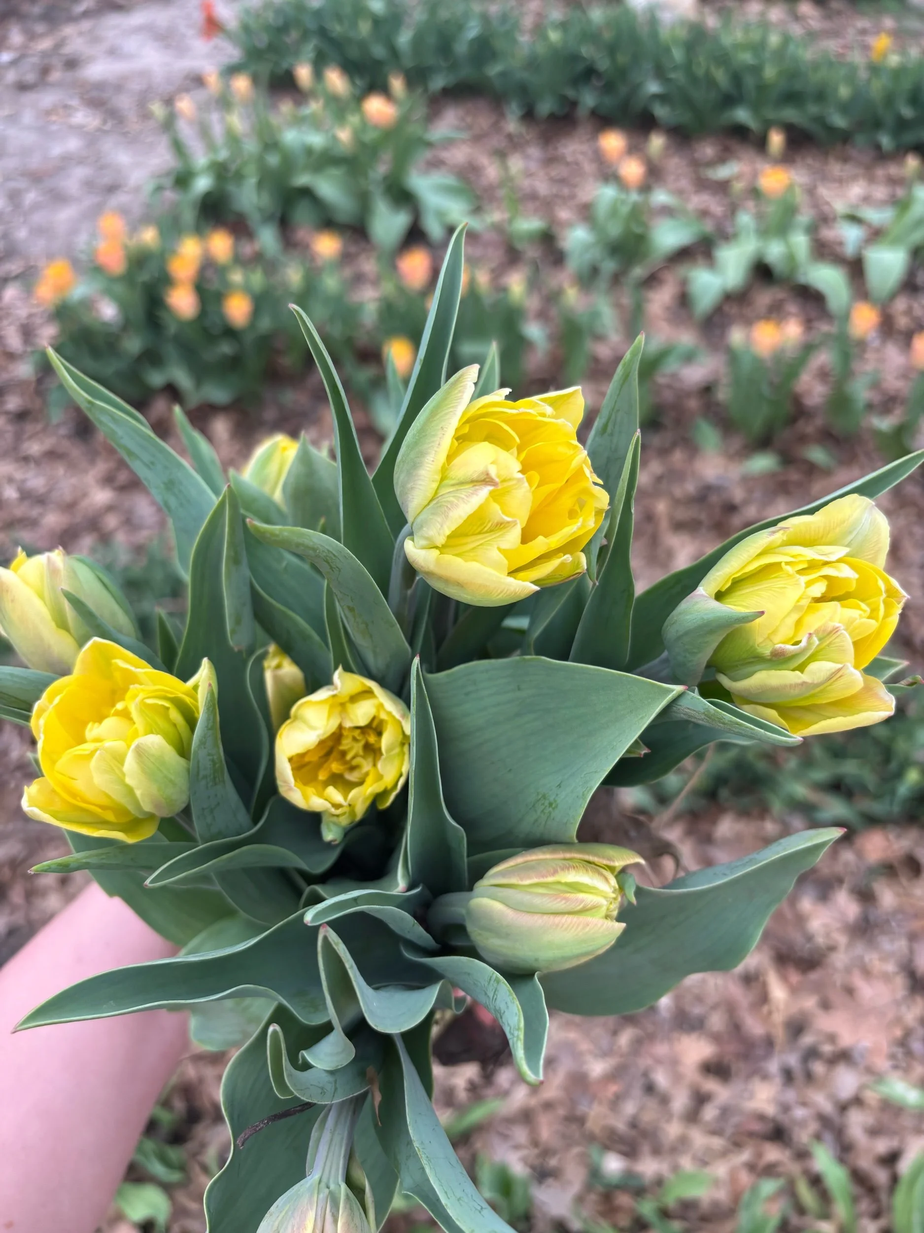 Locally grown and freshly harvested tulip arrangement in a quart jar. Colors vary by arrangement. If you would like a specific color incorporated, please state that in the Comment Box after adding the item to your cart. Color preferences will be taken into consideration but cannot be guaranteed.